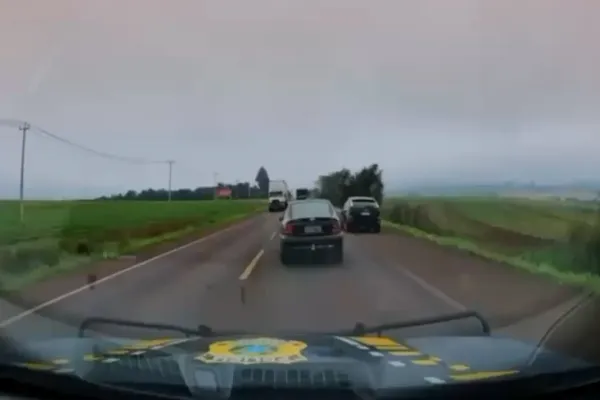 Imagens impressionantes da câmera veicular da Polícia Rodoviária Federal (PRF) revelam o desfecho de uma perseguição em alta velocidade que terminou em capotamento e incêndio na BR-369, em Cascavel, na manhã desta terça-feira (28). O acompanhamento tático foi realizado por equipes do Núcleo de Operações Especiais de Fronteira (NOE/Fron), que monitoravam o veículo suspeito.