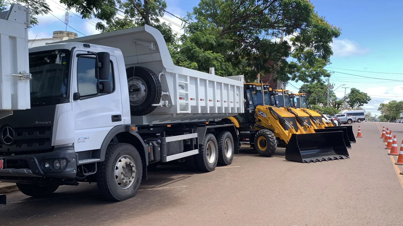 Prefeitura investe em infraestrutura urbana e rural com aquisição de caminhões, retroescavadeiras e equipamento de pintura viária.