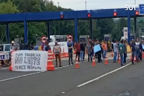 Uma manifestação de produtores de leite bloqueou a praça de pedágio em Laranjeiras do Sul, na BR-277, na manhã desta quarta-feira (5).