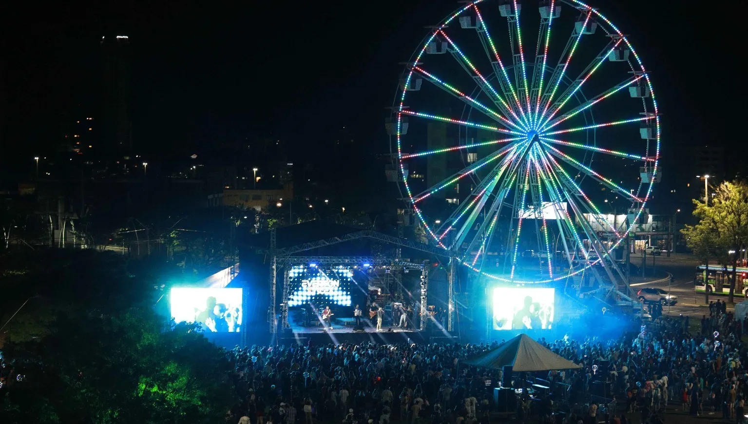 Milhares de famílias acompanharam uma programação especial que começou com o acendimento das luzes da decoração natalina e seguiu com shows, distribuição de atrações gratuitas e um espetáculo de fogos que iluminou o céu. Um dos momentos mais aguardados, a chegada do Papai Noel, aconteceu de forma surpreendente: primeiro na roda-gigante, depois no Terminal Oeste e, por fim, na sede da Prefeitura, despertando encantamento entre o público.