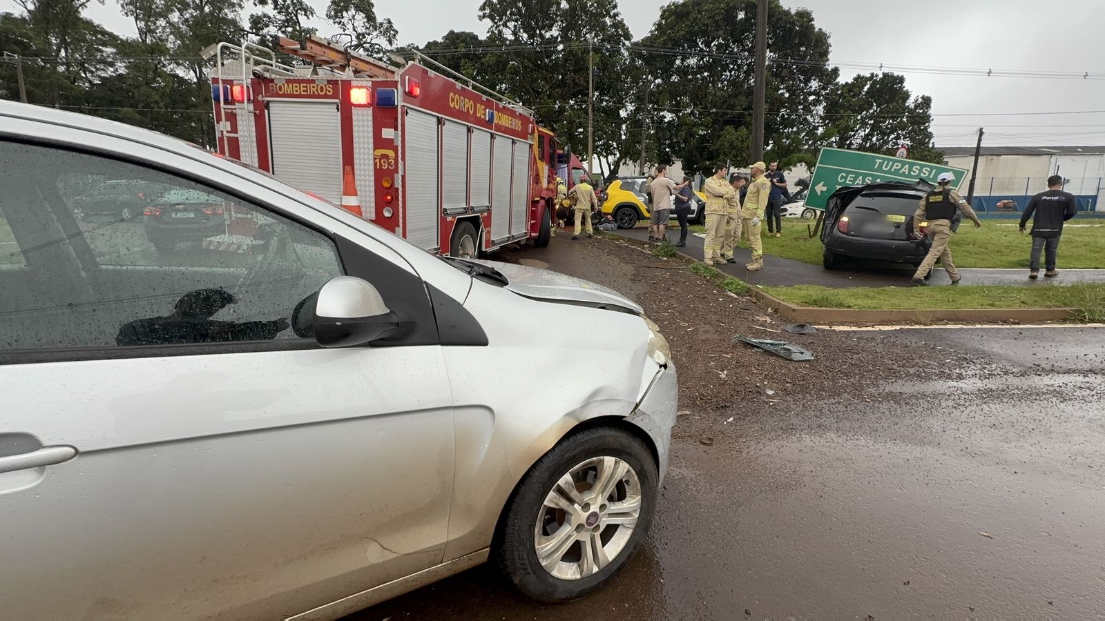 Carros colidem no trevo de acesso à Ceasa e deixam uma pessoa ferida em Cascavel