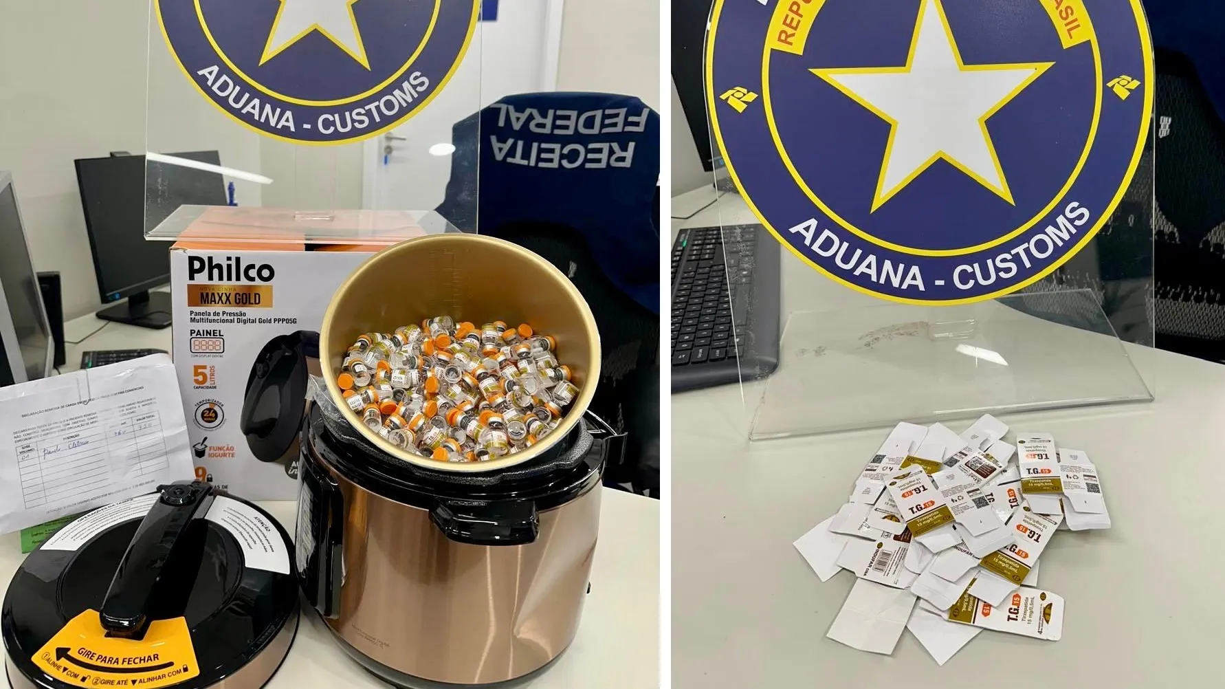 Receita Federal apreende frascos de tirzepatida escondidos em panela elétrica no oeste do Paraná