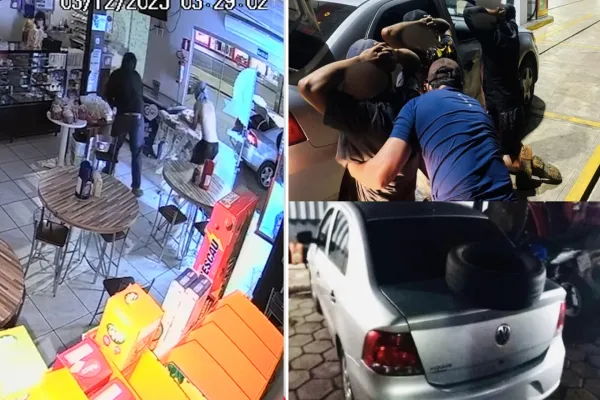 Já na madrugada do dia seguinte, por volta das 03h30, os criminosos utilizaram o veículo roubado para se deslocar até a cidade de Três Barras do Paraná, onde arrombaram uma panificadora e furtaram diversos produtos alimentícios, como pacotes de pães e bolachas.