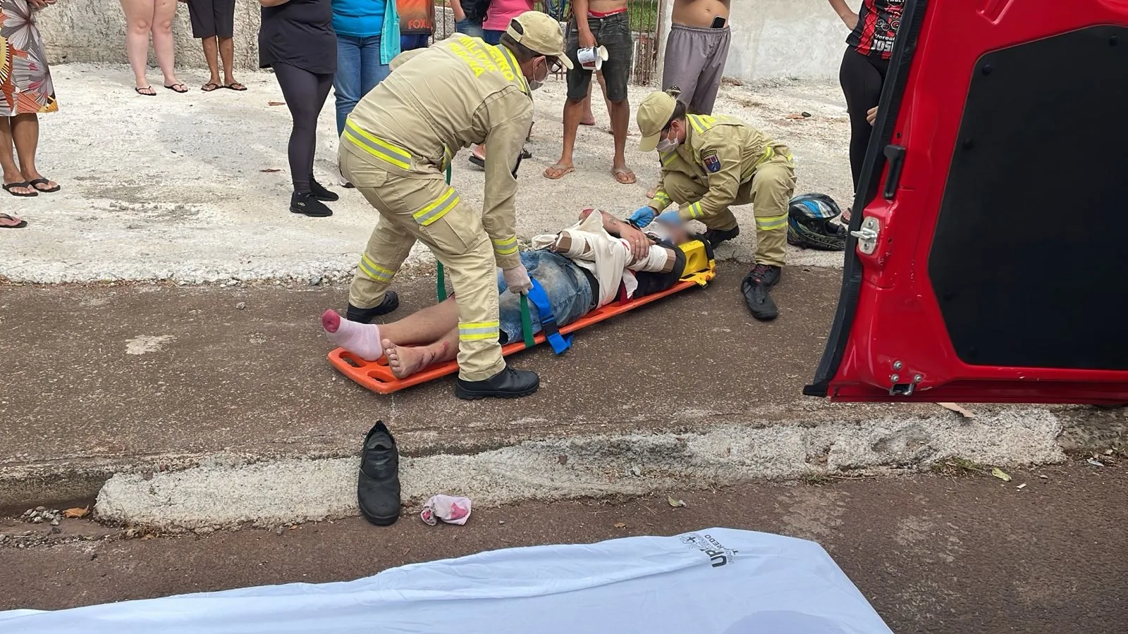 O impacto deixou a moto com danos significativos na lateral, enquanto o carro teve a dianteira esquerda avariada. A força da batida arremessou o motociclista para a calçada, exigindo atendimento imediato do Corpo de Bombeiros. O jovem sofreu fratura no punho, além de diversas contusões e escoriações.