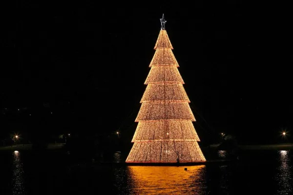 Lago Municipal de Cascavel ganha árvore flutuante de Natal