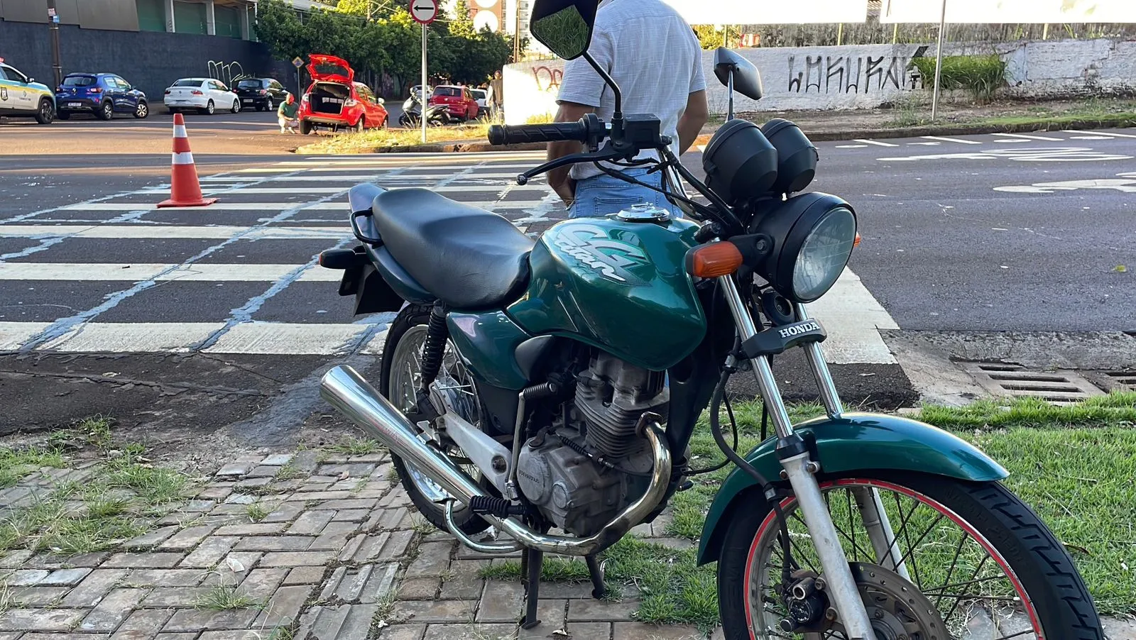 A colisão traseira ocorreu no cruzamento da Rua Presidente Kennedy com a Rua Salgado Filho e envolveu um automóvel Ford Ka e uma motocicleta Honda Titan. Com o impacto na parte traseira do carro, a condutora da moto foi lançada ao chão.
