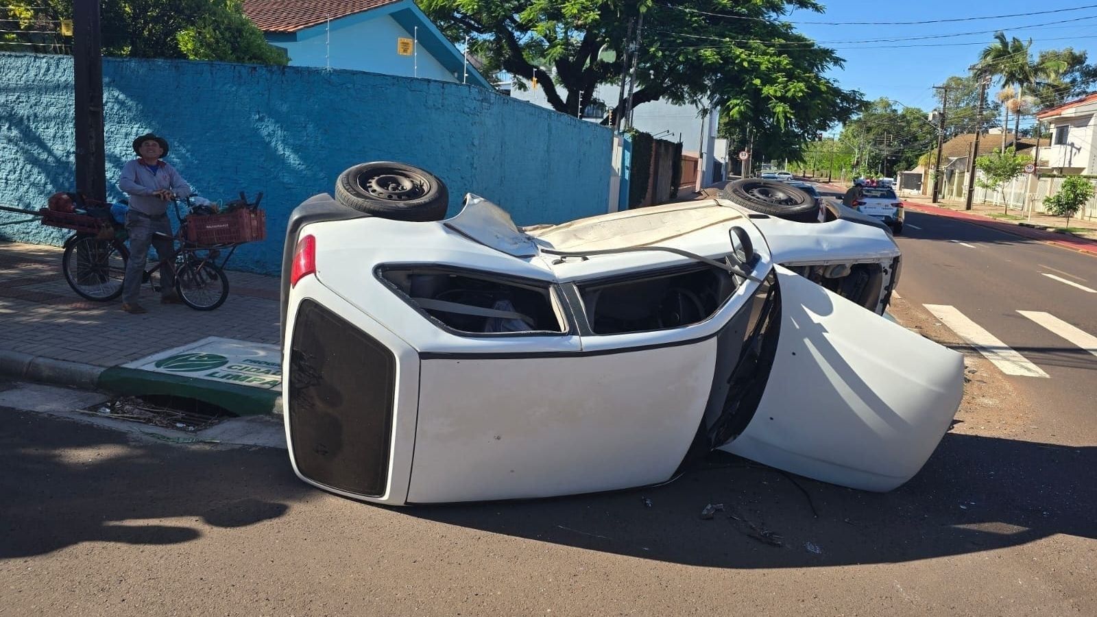 Duas pessoas ficam feridas após colisão seguida de tombamento no bairro Maria Luiza