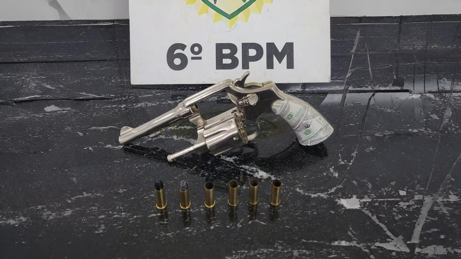 Na abordagem, o motorista informou espontaneamente que havia uma arma de fogo no interior do veículo. Em buscas realizadas no carro, os policiais localizaram um revólver calibre .38 no banco traseiro. A arma estava acompanhada de munições.