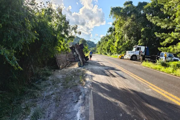 Caminhão tomba na PR-484 e deixa motorista ferido em Boa Vista da Aparecida