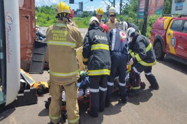 O acidente ocorreu enquanto o veículo transportava lixo orgânico com destino ao aterro sanitário do município. Com o impacto do tombamento, o condutor ficou preso às ferragens, exigindo a rápida atuação das equipes do Corpo de Bombeiros e do Serviço de Atendimento Móvel de Urgência (Samu).