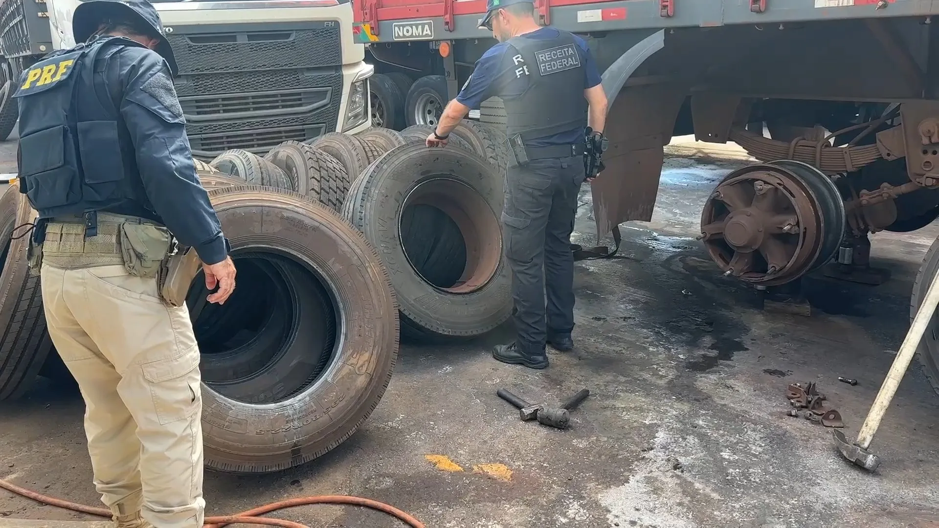 A PRF informou que tem constatado, com frequência, carretas do Paraguai circulando em rodovias brasileiras e retornando ao país vizinho com pneus deteriorados, o que levanta suspeitas de práticas ilegais. Em situações anteriores, os veículos eram autuados e retidos até a regularização das condições de segurança. Desta vez, porém, foi possível comprovar o contrabando no momento da troca dos pneus.