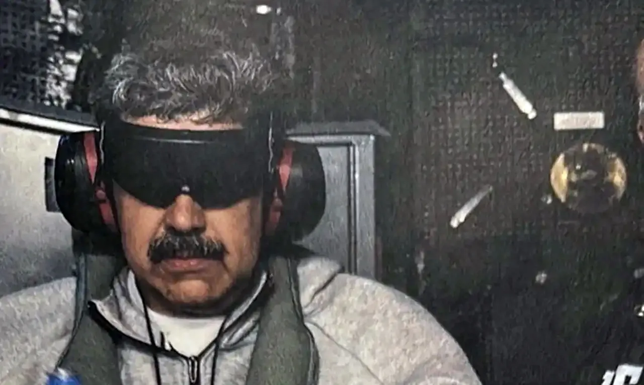Na imagem, Maduro aparece com óculos escuros e usando um conjunto de moletom cinza. Ele segura uma garrafa de água e, aparentemente, está algemado. Trump informou hoje que Maduro e a primeira-dama Cilia Flores estão sendo levados de navio para Nova York.