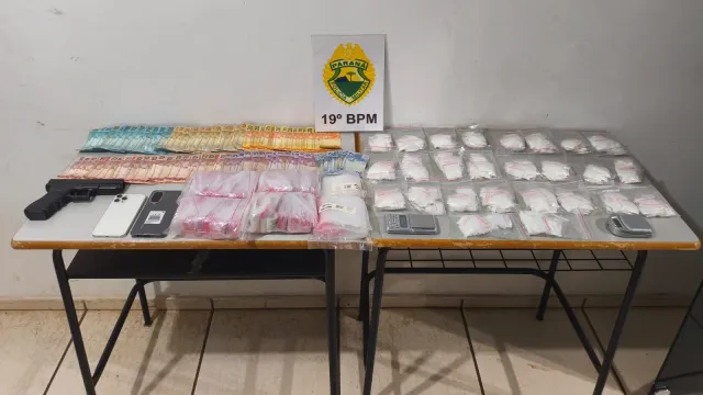 A equipe policial se deslocou até o endereço informado, onde encontrou uma mochila contendo cerca de 615 gramas de cocaína, distribuídas em 25 pacotes e fracionadas em aproximadamente 625 invólucros prontos para a comercialização. No local, também foram apreendidas duas balanças de precisão, grande quantidade de embalagens do tipo zip-lock, R$ 2.637,00 em dinheiro, um telefone celular modelo Redmi 5 e um simulacro de arma de fogo.