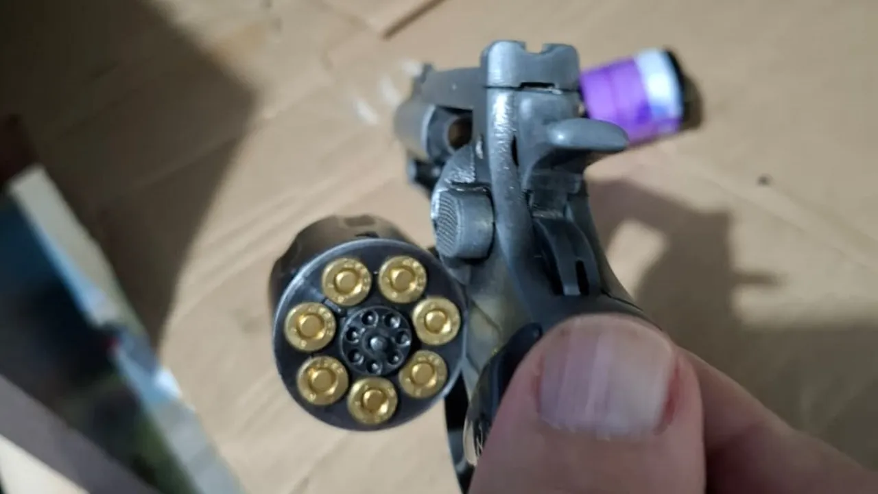 Um dos indivíduos foi preso em flagrante delito pela posse irregular de arma de fogo de uso permitido..