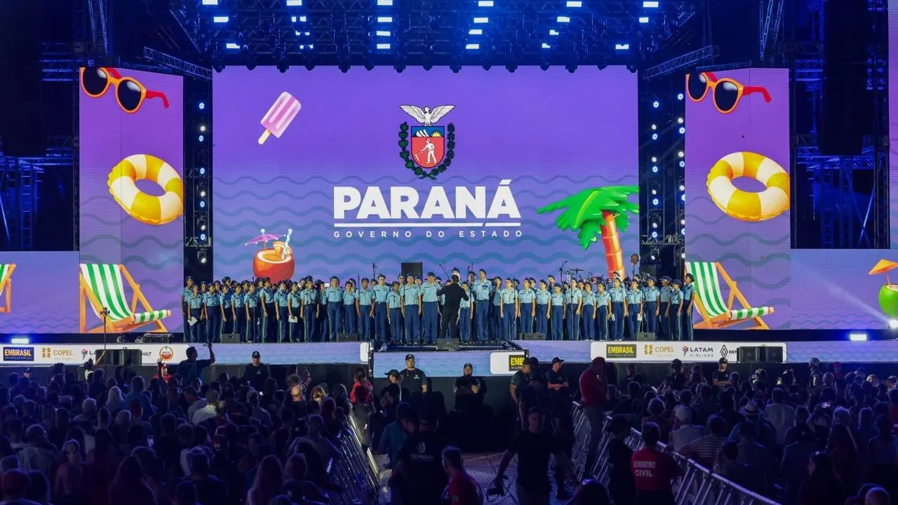 Estudantes de Colégio Cívico-Militar de Piraí do Sul se apresentam para milhares de pessoas no palco do Verão Maior Paraná