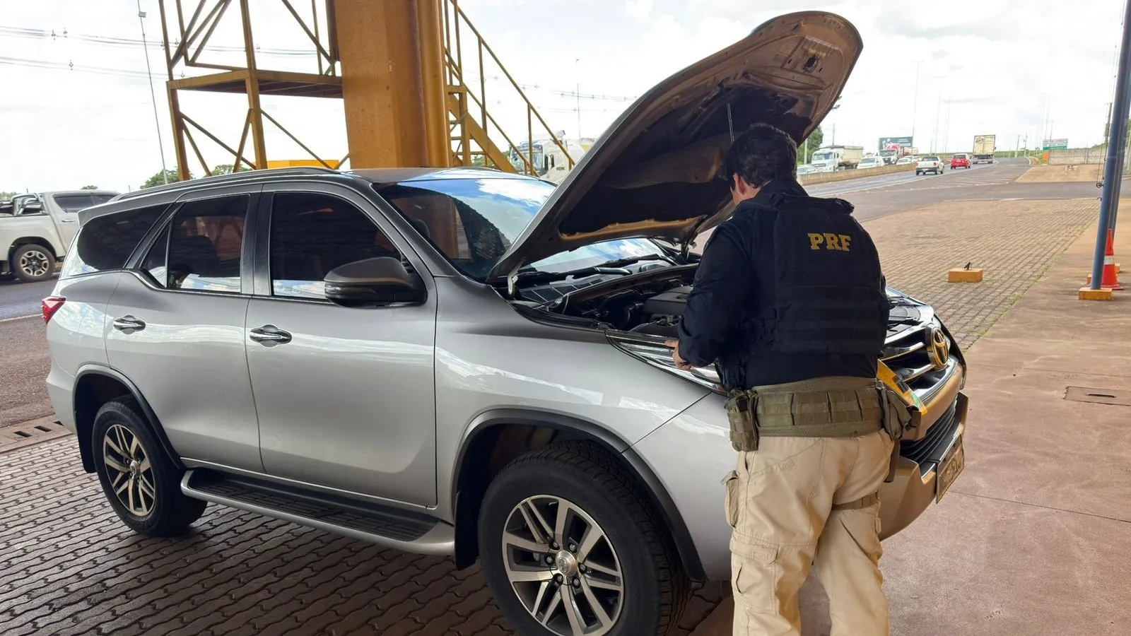 Durante a verificação de uma Toyota Hilux, os policiais fizeram uma análise detalhada dos elementos identificadores do veículo, procedimento padrão utilizado para conferir a autenticidade de chassi, placas e demais sinais de identificação. A partir dessa checagem, foi constatado que a caminhonete era produto de furto registrado na cidade de São Paulo no dia 9 de dezembro de 2025.