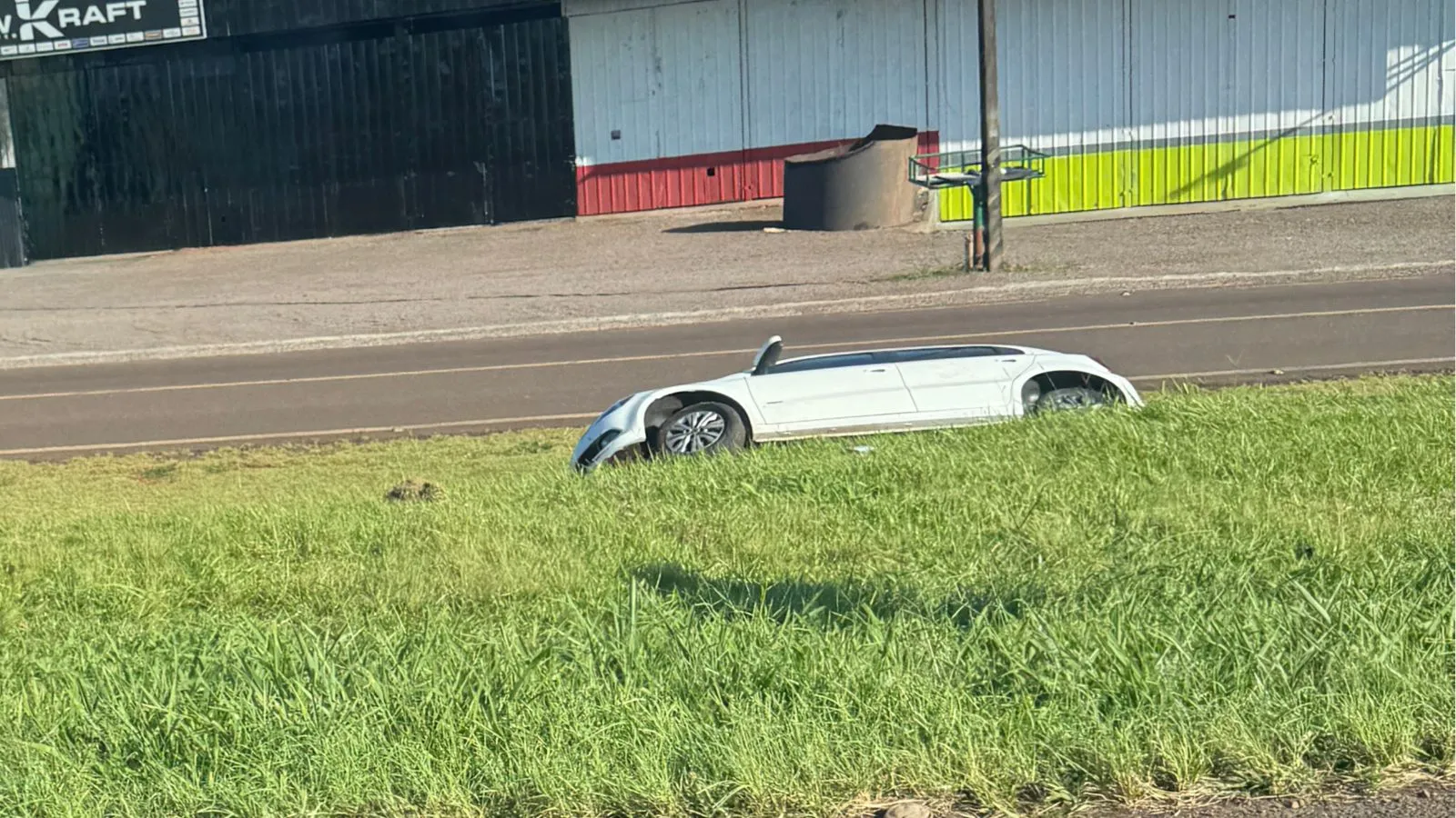 Carro sai da pista na BR-277 e é encontrado em canaleta no Turisparque, em Cascavel