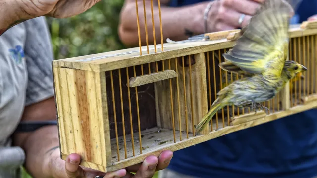 Após um período de cinco dias de internação para reabilitação clínica e testes de voo, seis pássaros foram soltos na natureza nesta quinta-feira (22) por técnicos do Instituto Água e Terra (IAT) em Pontal do Paraná, no Litoral. As aves – quatro canários-da-terra (Sicalis Flaveola), um coleiro (Sporophila caerulescens) e um cúrio (Sporophila angolensis) – foram resgatadas de um criadouro ilegal na região.