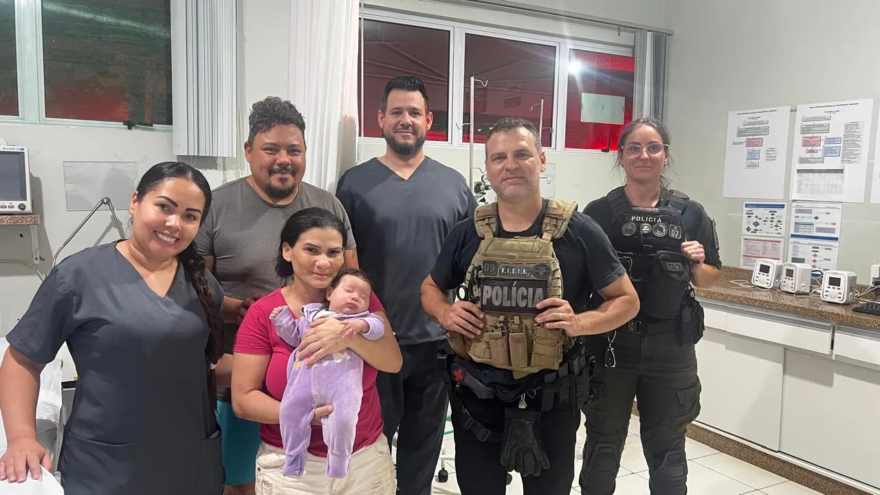 Ele pediu ajuda imediata e contou que a filha, Lorena, de apenas dois meses de idade, estava engasgada e com dificuldade para respirar. Diante da urgência, os policiais interromperam o deslocamento e iniciaram o atendimento no próprio local. O policial civil Paulo realizou a manobra de desengasgo e conseguiu liberar as vias aéreas da criança, garantindo que ela voltasse a respirar normalmente.