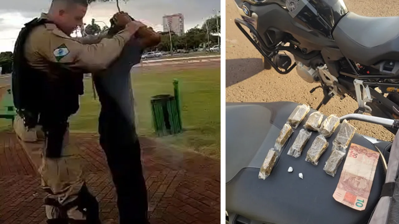 Ação integrada da PM com monitoramento por câmeras identificou suspeito na Praça da Bíblia e resultou em prisão e apreensão de drogas.