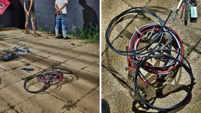 No fim da noite desta quinta-feira (29), a Guarda Municipal de Cascavel prendeu em flagrante dois homens, de 39 e 47 anos, suspeitos de furtar fios na região central da cidade. A ocorrência foi registrada na Rua Pernambuco, no cruzamento com a Rua Pio XII, área com recorrência desse tipo de crime.