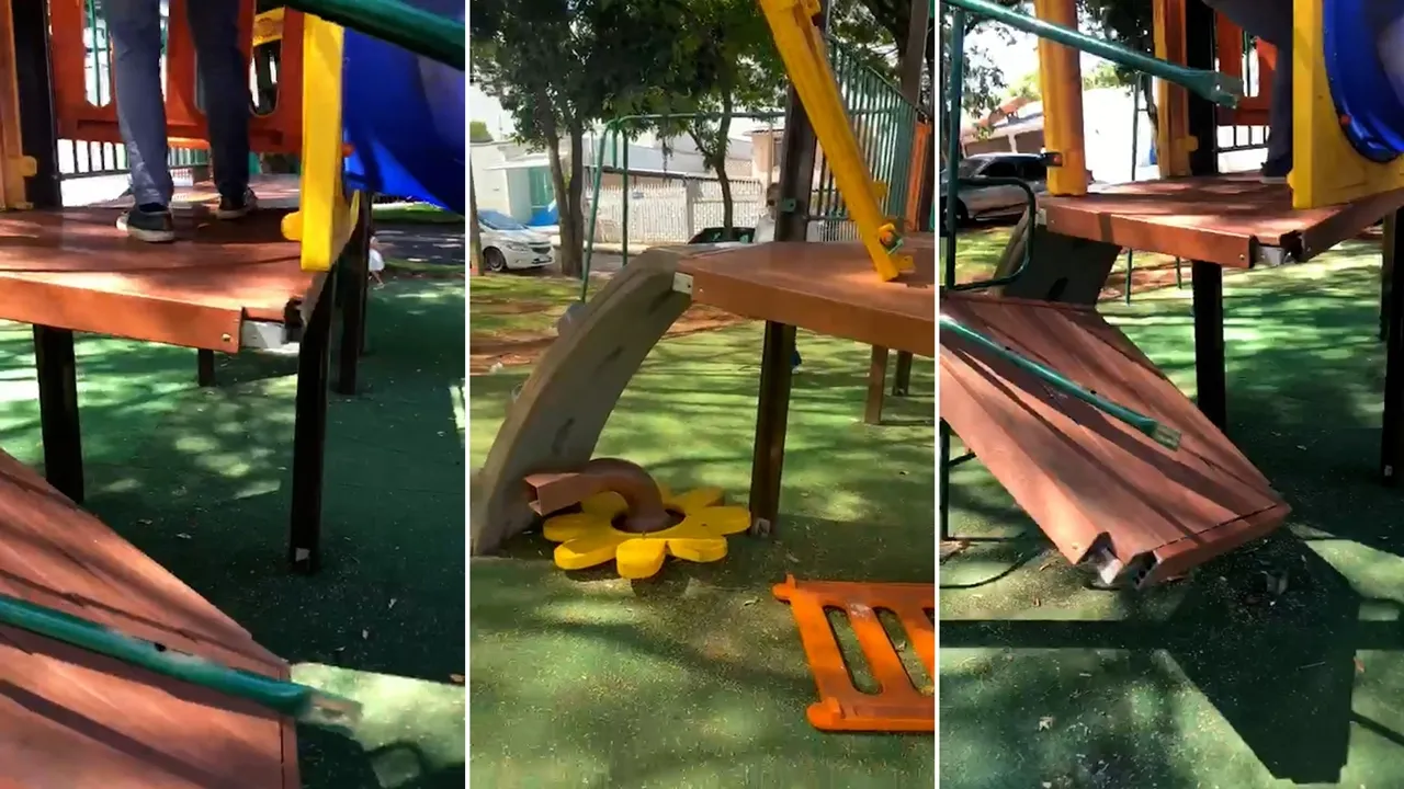 Esse cenário, no entanto, vem sendo substituído por cenas de destruição. Os parquinhos têm sido alvo constante de vândalos que atacam o patrimônio público em busca de alumínio, material que possui valor no mercado clandestino. O resultado é devastador: brinquedos destruídos, estruturas comprometidas e ambientes que deixam de ser seguros para a comunidade.