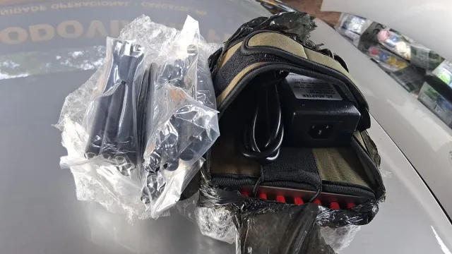 Durante a mesma vistoria, a equipe identificou um equipamento do tipo jammer, dotado de múltiplas antenas e projetado para bloquear sinais de comunicação. O uso e a operação desse dispositivo sem autorização configuram atividade clandestina de telecomunicações, conforme a regulamentação da Agência Nacional de Telecomunicações. Além de ilegal, esse tipo de aparelho pode causar riscos à segurança pública ao interferir em redes de comunicação e em serviços de emergência.