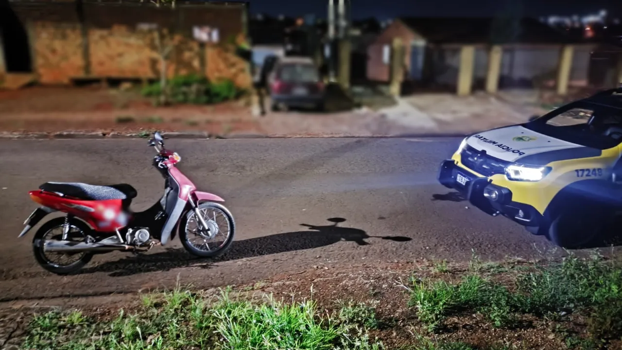 Durante o deslocamento da equipe, os policiais visualizaram o condutor trafegando em zigue-zague e com o farol apagado, situação que chamou a atenção pela possibilidade de risco à segurança viária. A abordagem foi realizada imediatamente e, na verificação inicial, constatou-se que o motociclista não possuía Carteira Nacional de Habilitação e que a motoneta apresentava pendências de documentação.