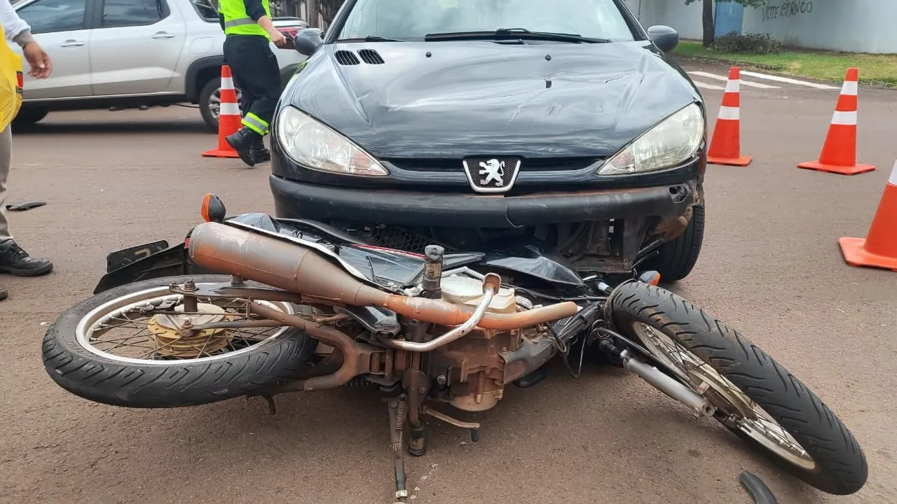 Motociclista escapa ileso após colisão com carro no bairro Parque São Paulo, em Cascavel