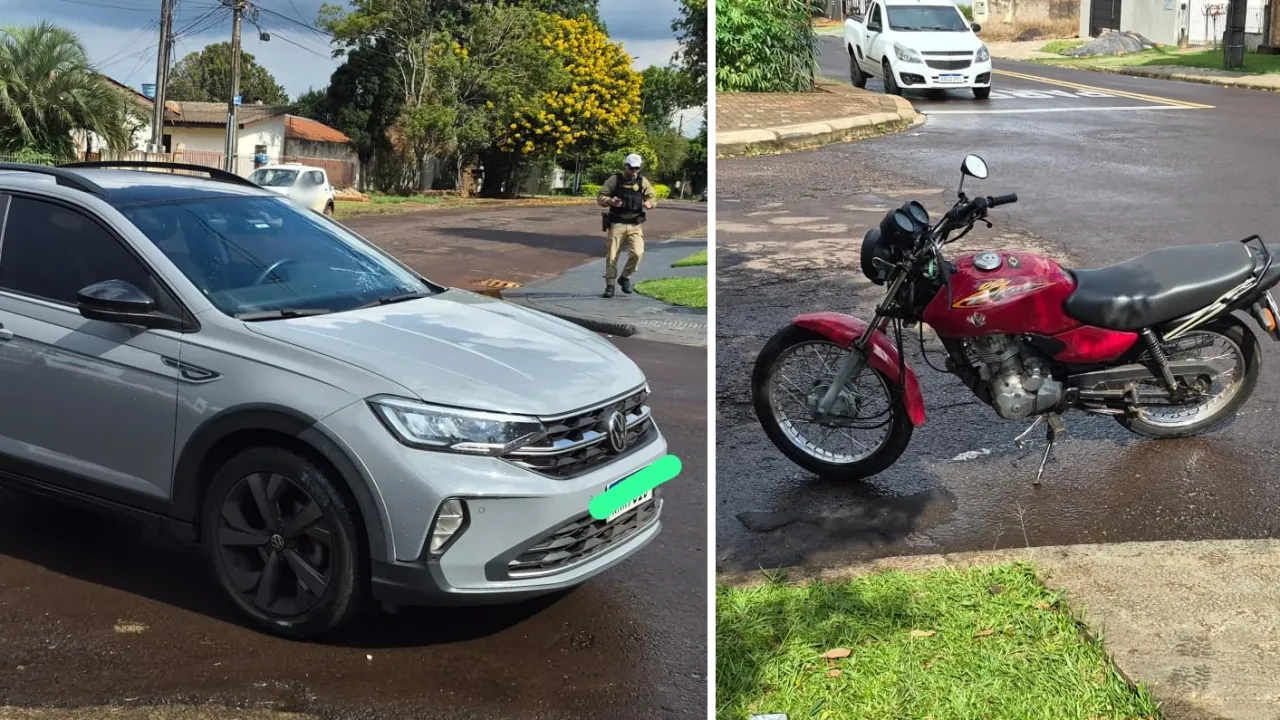 De acordo com o atendimento realizado pela PPTRAN, a motocicleta Honda CG 125 Titan seguia pela Rua Sociologia, considerada via preferencial, quando, ao chegar ao cruzamento, acabou se envolvendo em um abalroamento transversal com um VW Nivus que trafegava pela Rua Academia. O impacto causou danos nos dois veículos e chamou a atenção de moradores e motoristas que passavam pelo local naquele momento.