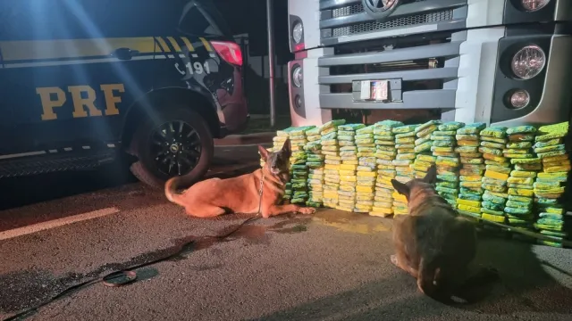 PRF apreende quase meia tonelada de drogas com apoio de cães farejadores no Paraná