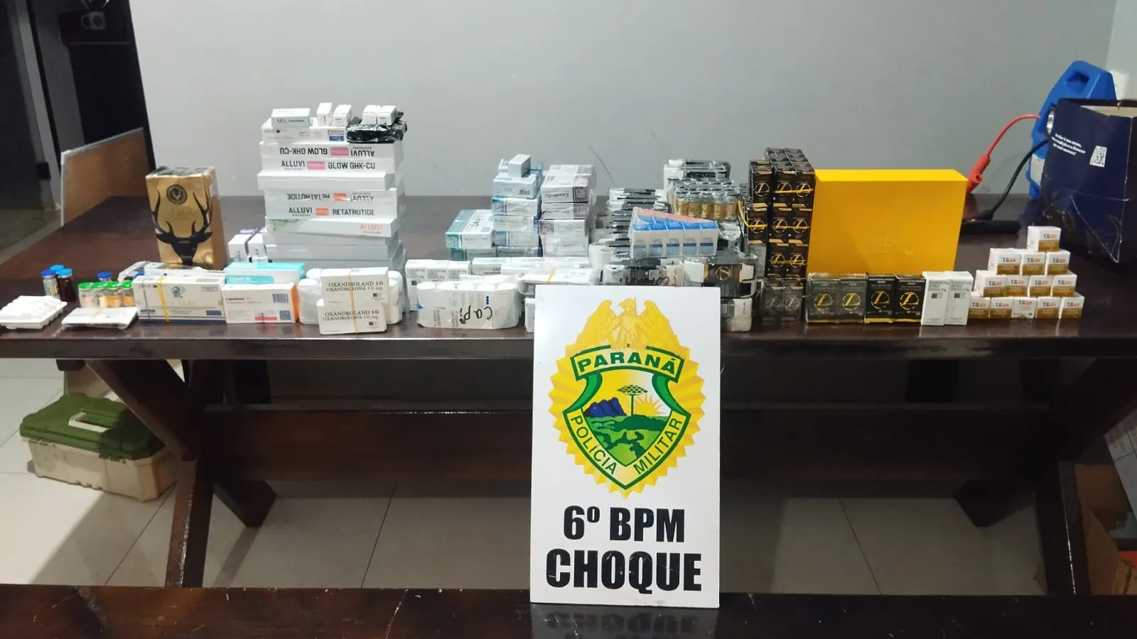 De acordo com a Polícia Militar, os produtos pertenciam a um homem que viajava no ônibus e teriam como destino final a cidade de São Paulo. Entre os itens apreendidos estavam medicamentos para emagrecimento e anabolizantes.