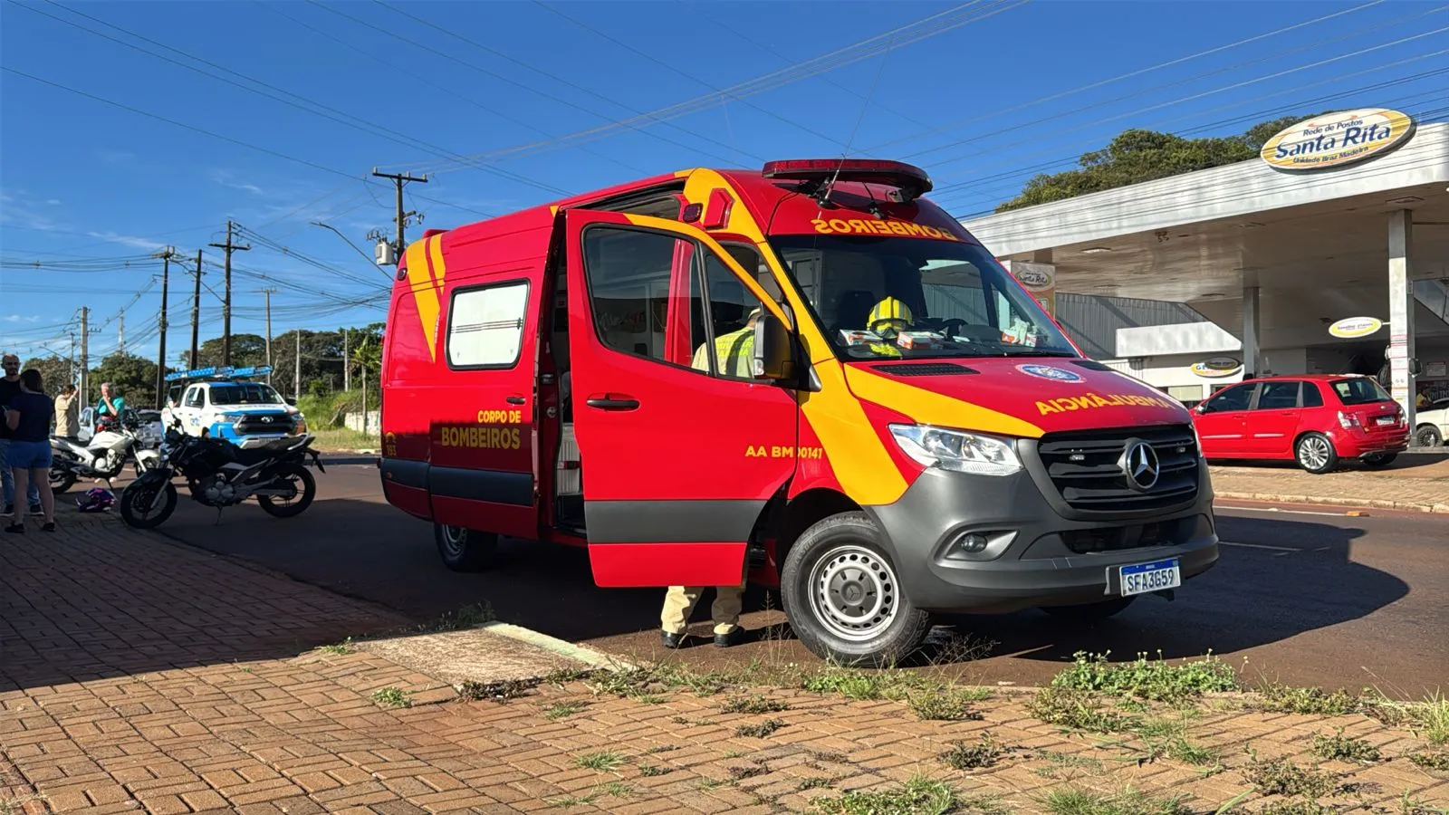 Apesar de duas pessoas estarem na motocicleta no momento do acidente, apenas uma delas sofreu ferimentos. A vítima, um homem de 39 anos, recebeu os primeiros atendimentos ainda no local pelas equipes do Serviço Integrado de Atendimento ao Trauma em Emergência (SIATE).