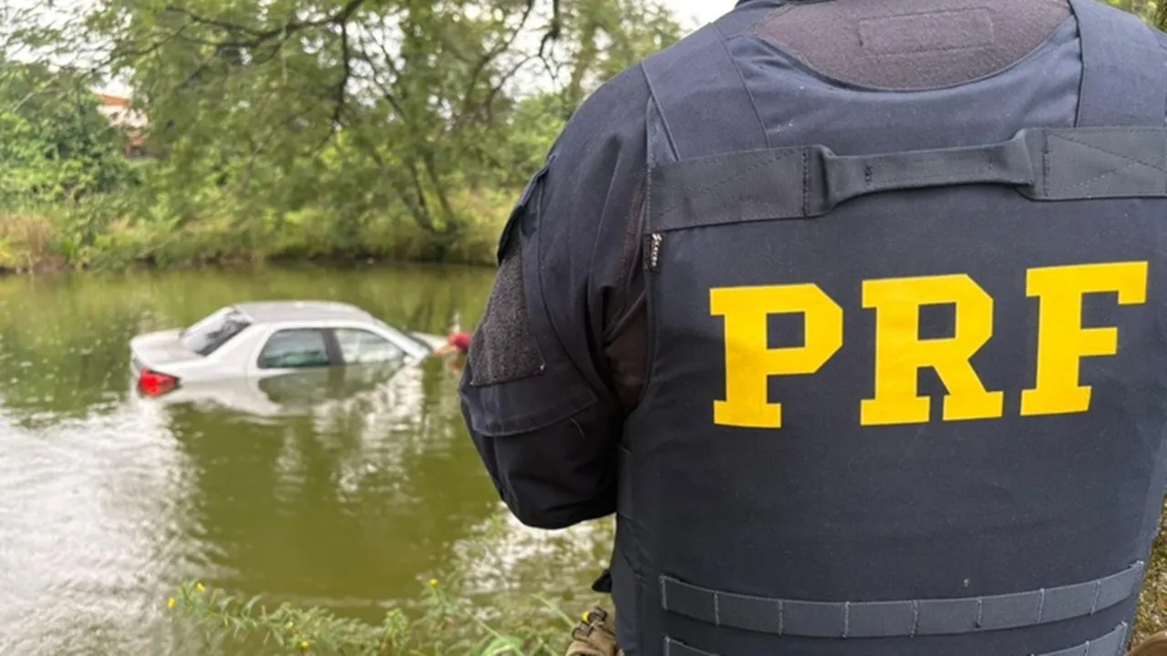 PRF apreende agrotóxicos após dupla de menores "mergulharem" com o carro num açude no Paraná