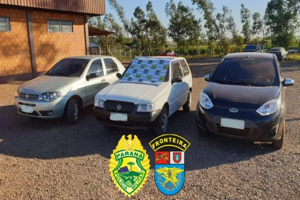 Os condutores dos veículos, dois homens e uma mulher informaram aos Policiais Militares que os veículos seriam usados para transportar cigarros contrabandeados. Os três veículos foram apreendidos e encaminhados aos procedimentos cabíveis.