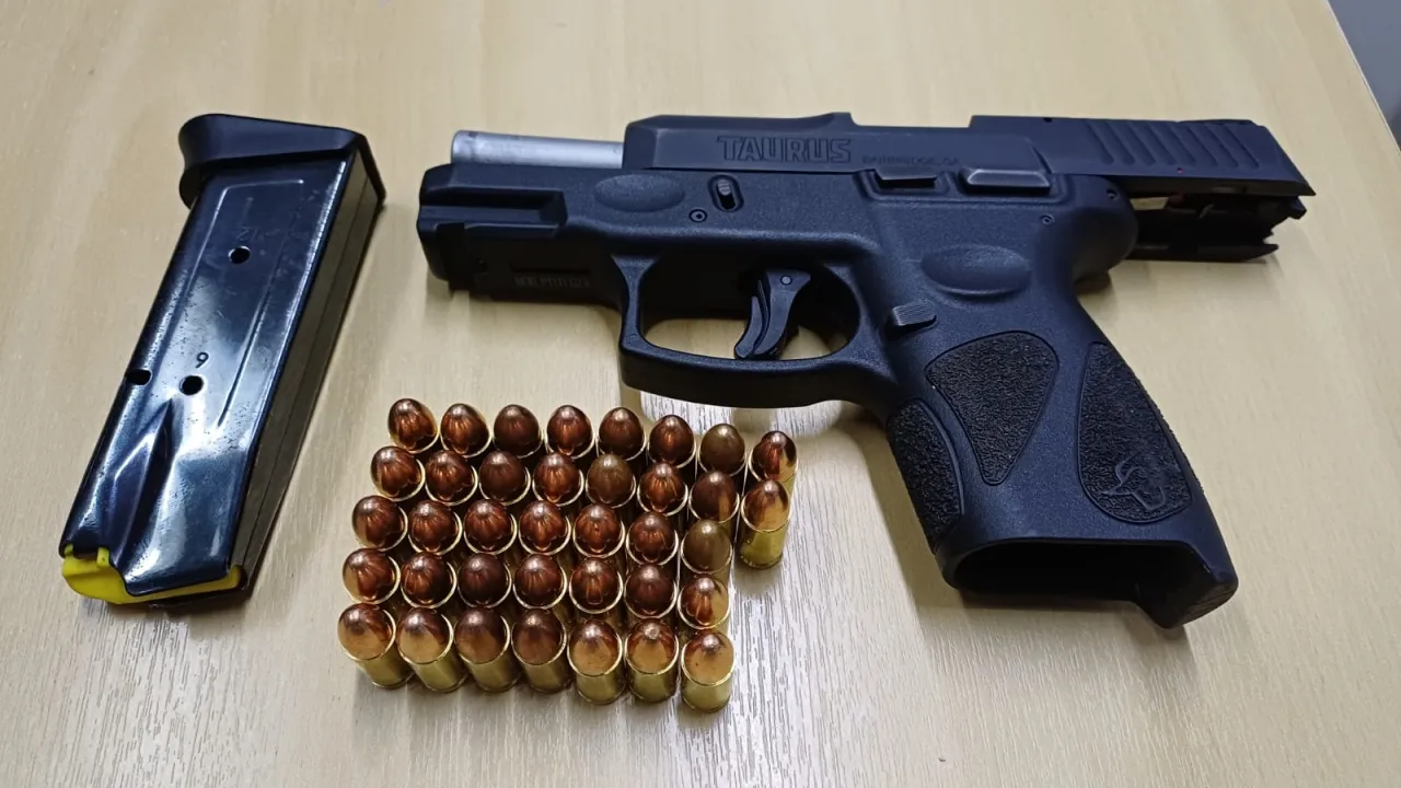 Durante a inspeção, os policiais também encontraram com o suspeito uma pistola calibre 9mm, um carregador e 37 munições intactas. A arma e o material foram apreendidos.