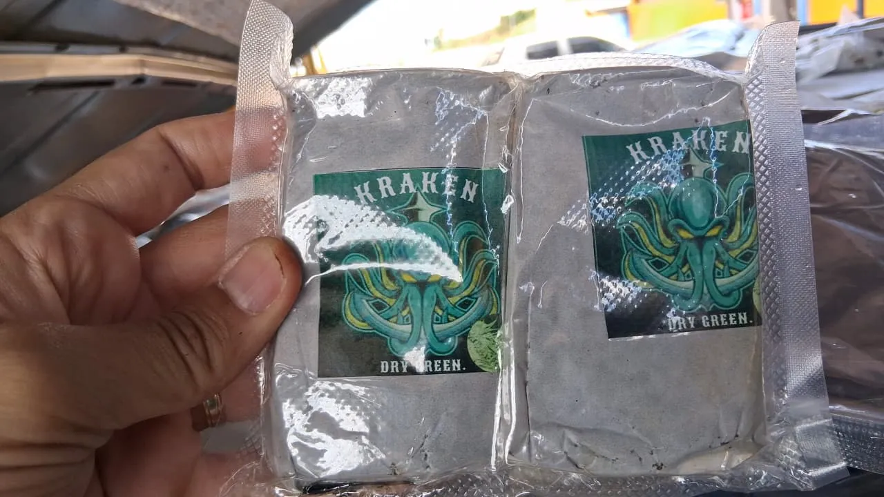 Os volumes estavam embalados a vácuo e apresentavam diferentes logotipos, característica frequentemente associada ao tráfico de drogas. Após a constatação, o condutor foi preso em flagrante.