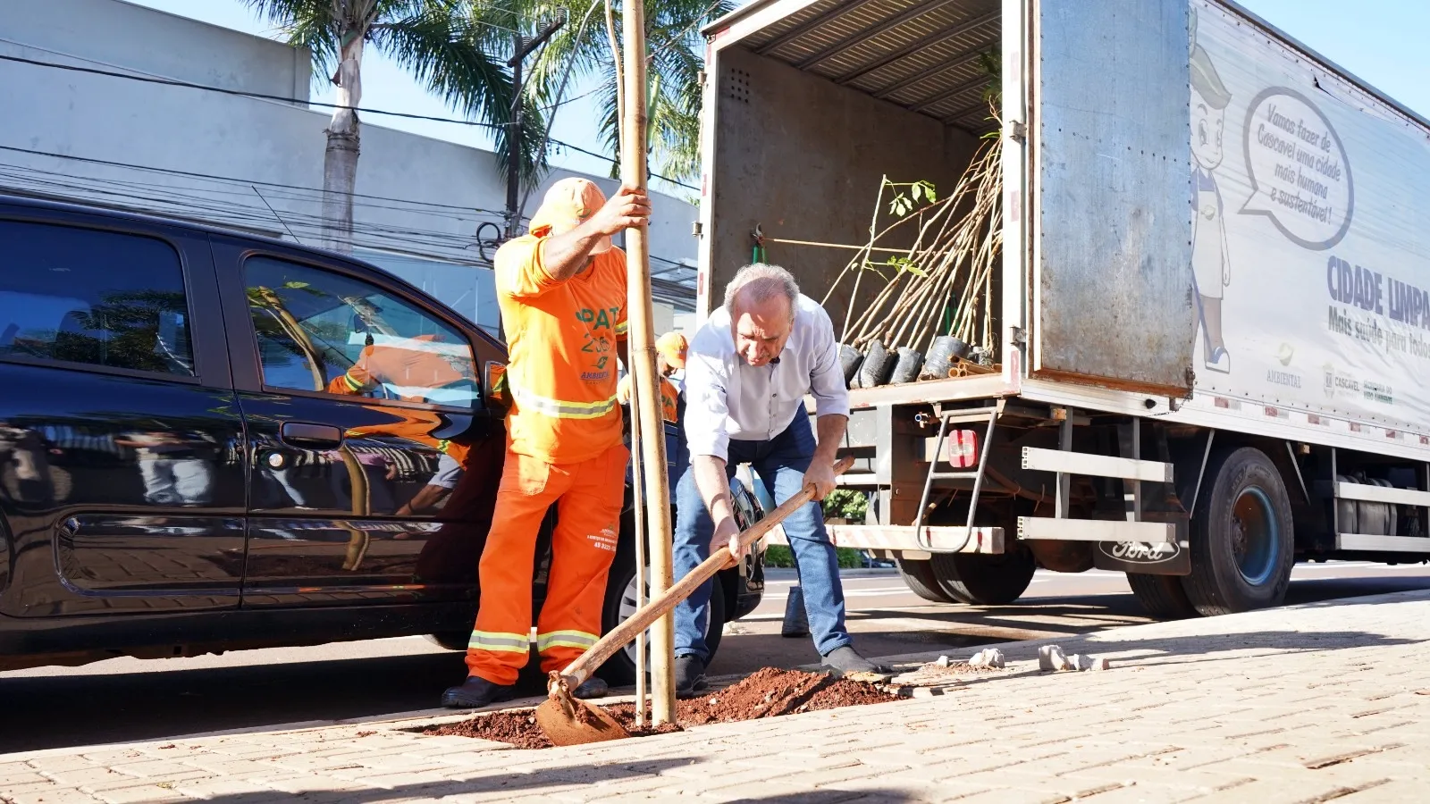 A Prefeitura de Cascavel lançou, nesta quarta-feira (1º), o programa Cascavel Mais Verde, com o início do plantio de mil mudas na região central da cidade. A primeira ação ocorreu na Rua Paraná, próximo à sede da Polícia Federal, marcando o começo de uma estratégia que busca ampliar as áreas verdes no ambiente urbano de forma planejada.