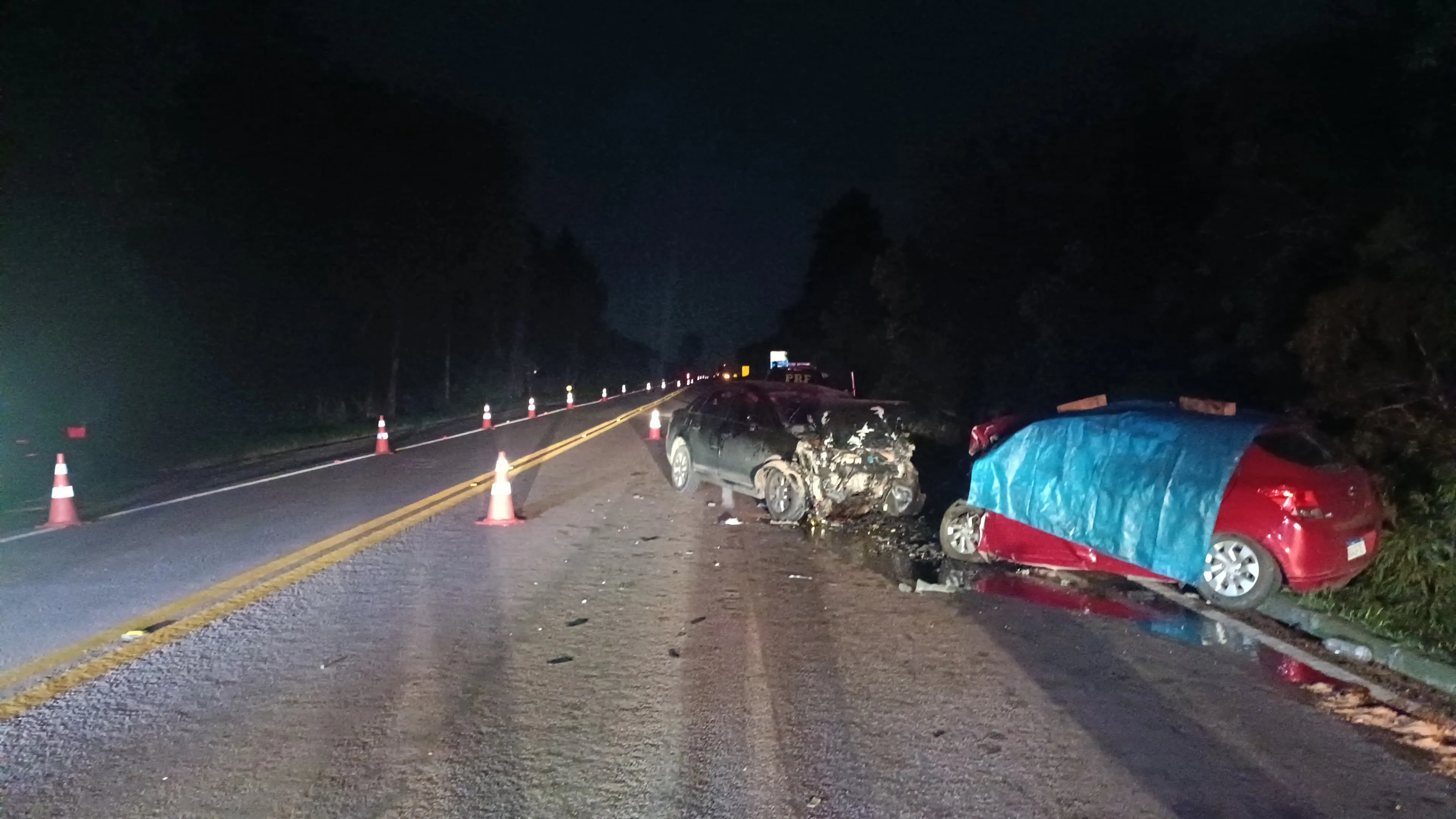 Colisão frontal na BR-116 em Mandirituba deixa dois mortos e um ferido grave