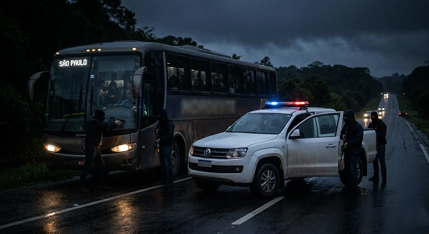 Linha entre Foz do Iguaçu e São Paulo foi interceptada por grupo armado que utilizou falso giroflex e bloqueador de sinal