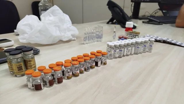 Na sequência, foram realizadas buscas pessoais, que resultaram na localização de diversos produtos escondidos sob as vestes dos indivíduos. Ao todo, foram apreendidas 21 unidades de anabolizantes e 45 frascos de medicamentos emagrecedores, todos em desacordo com as normas sanitárias vigentes.