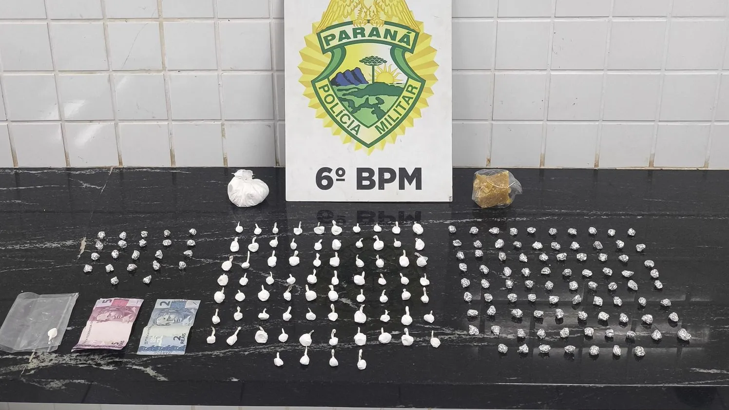 Durante a abordagem, a jovem dispensou uma chave veicular. Ao ser acionada, os policiais identificaram um veículo Chevrolet Onix branco estacionado nas proximidades. Na busca no automóvel, foi encontrada, sobre o banco do passageiro, uma fralda contendo uma pedra de crack de aproximadamente 100 gramas. Já sob o banco do motorista, havia duas bolsas com porções de cocaína, totalizando cerca de 80 gramas, além de 75 buchas da droga e 109 pedras de crack.