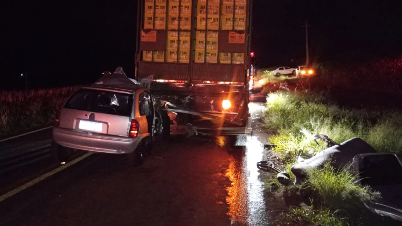 De acordo com informações da Polícia Rodoviária Estadual, o sinistro foi registrado por volta das 3h30 e comunicado às autoridades às 4h. A ocorrência envolveu um caminhão VW/24.280 CRM 6x2 e um GM/Corsa Wind, ambos com placas de Cafelândia.