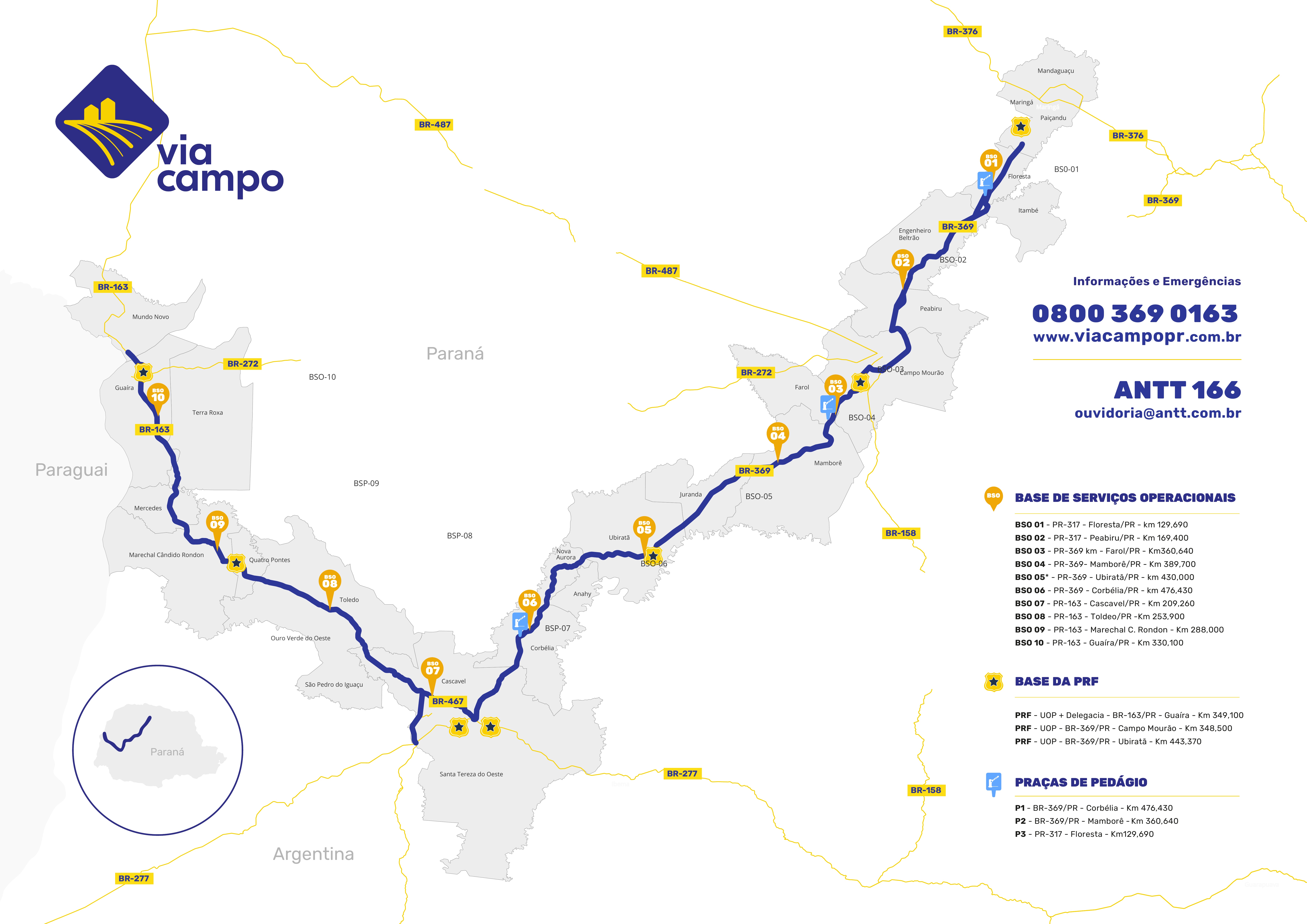 A Via Campo assume a gestão de 433 quilômetros de rodovias federais e estaduais, considerados estratégicos para o escoamento da produção agrícola paranaense. Os trechos conectam importantes polos produtivos e centros urbanos das regiões Oeste e Norte, fortalecendo a logística do agronegócio no estado.