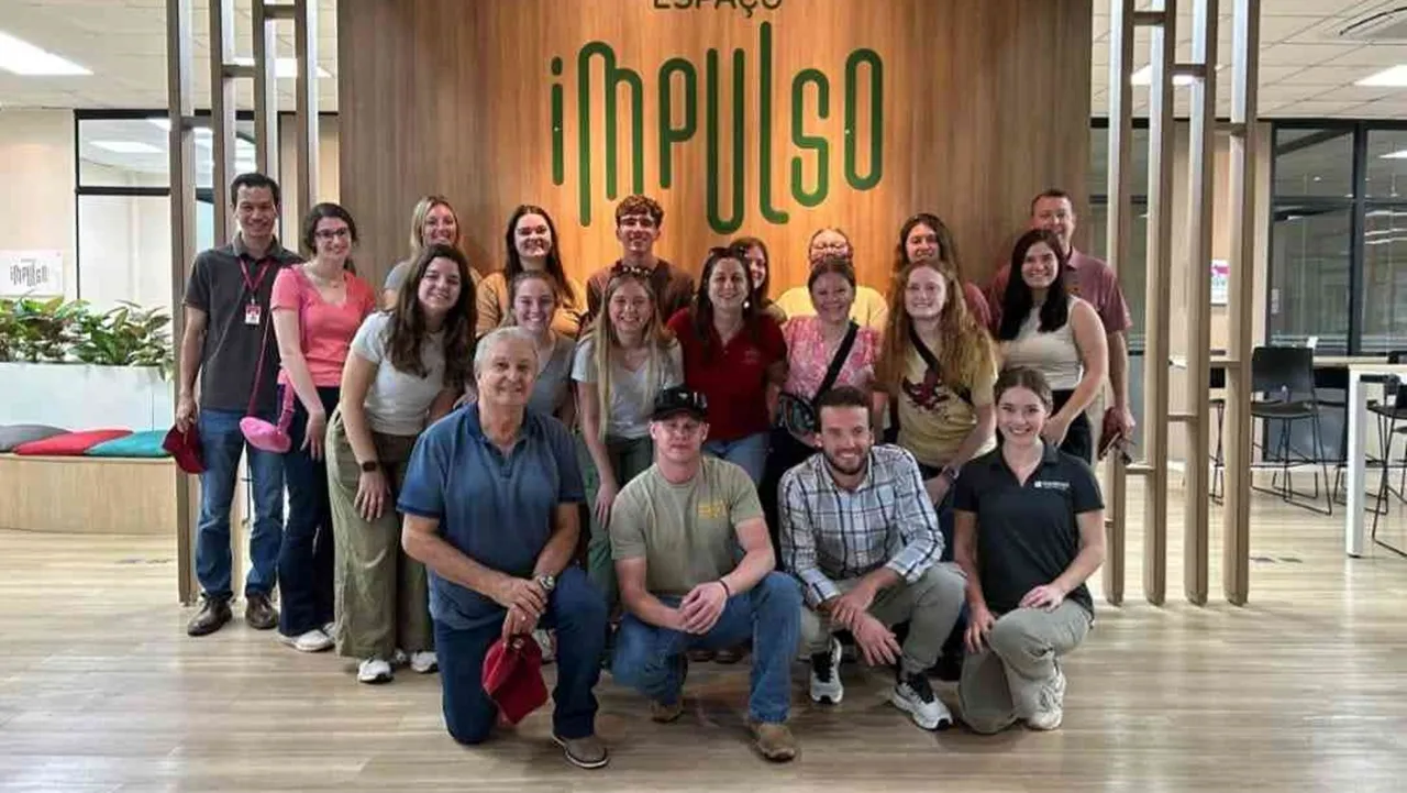 Alunos da Iowa State University foram recebidos no Espaço Impulso, no parque do Show Rural Coopavel, em Cascavel, durante visita técnica com foco na compreensão do agronegócio brasileiro. O grupo, formado por 18 integrantes (três professores, 14 estudantes dos cursos de Ciência Animal, Estudos Agrícolas e Economia Agrícola, além de um tradutor), foi recepcionado pelo presidente da cooperativa, Dilvo Grolli, juntamente com o coordenador de Inovação, Kleberson Angelossi.
