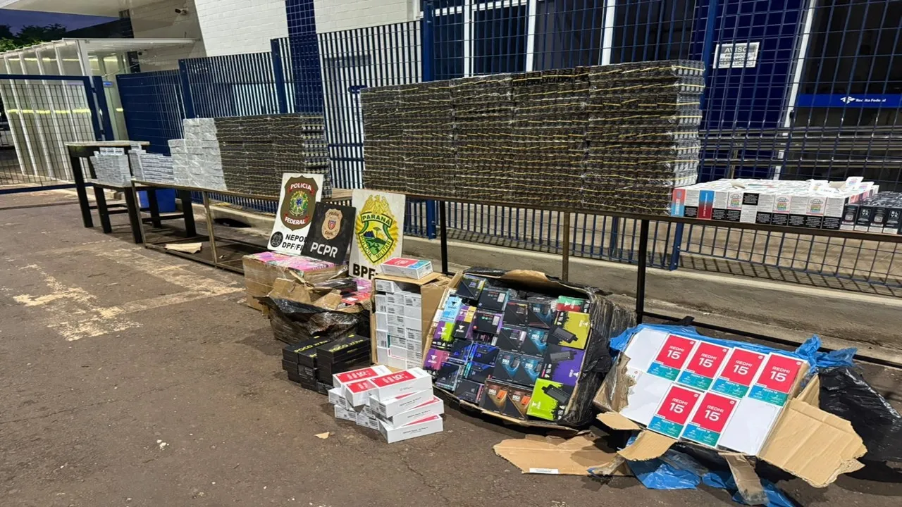 Uma ação conjunta entre a Polícia Federal, Polícia Militar e Polícia Civil resultou na apreensão de grande quantidade de mercadorias contrabandeadas na madrugada de quarta-feira (22/04), em Foz do Iguaçu, no oeste do Paraná. A operação ocorreu por volta das 3h, após a identificação de uma travessia irregular de embarcação no Rio Paraná, na região central da cidade.