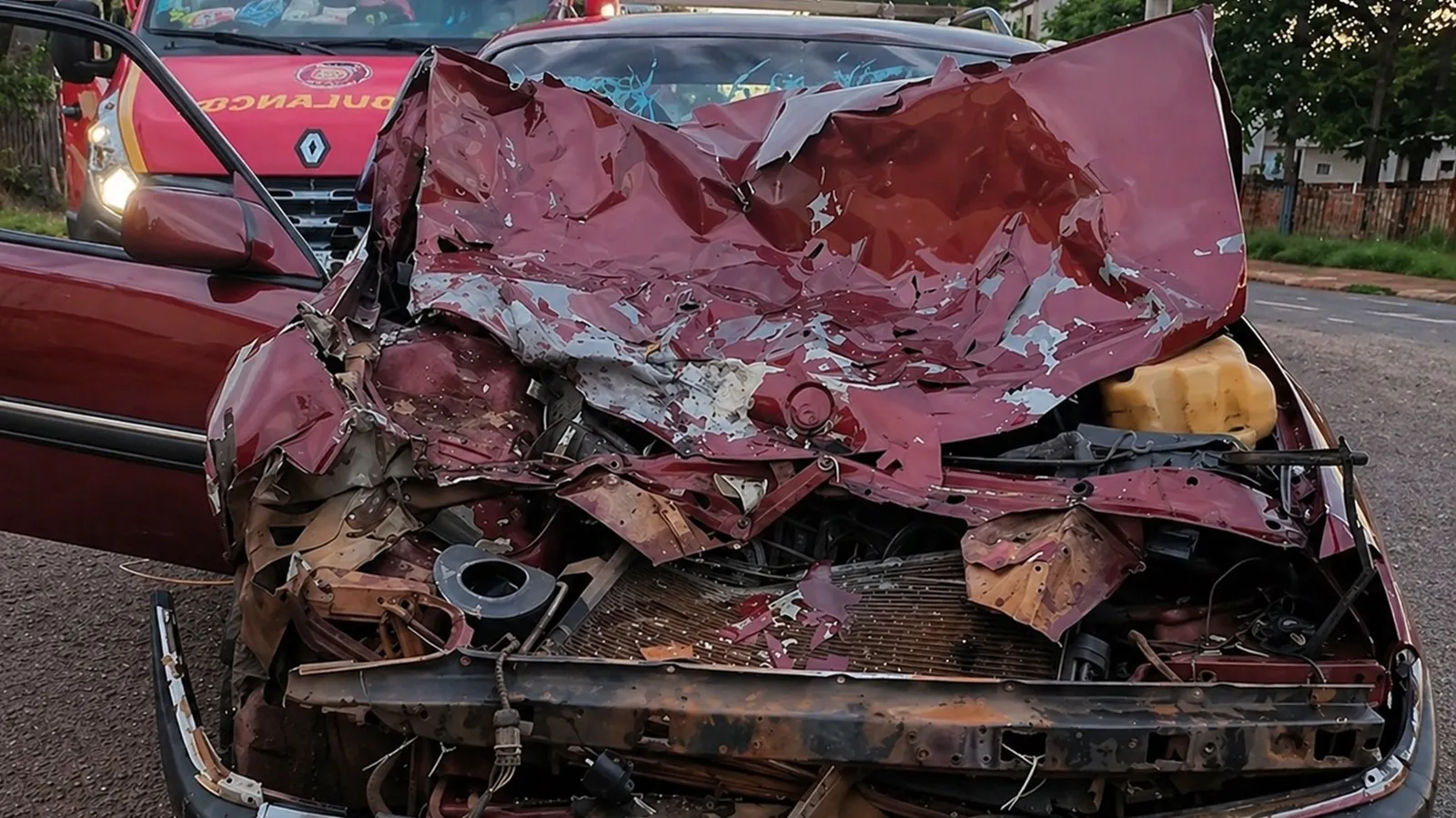 De acordo com as informações apuradas no local, os veículos seguiam em sentidos opostos quando colidiram na interseção. Com o impacto, a parte frontal do automóvel, um Omega, ficou completamente destruída, evidenciando a força da batida.