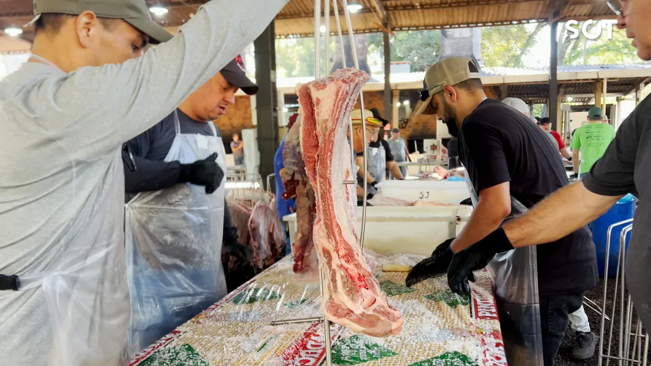 O trabalho exige técnica e planejamento, já que a preparação precisa seguir um cronograma rigoroso para manter a qualidade das carnes. A movimentação intensa marca o início da reta final antes da abertura oficial do evento.