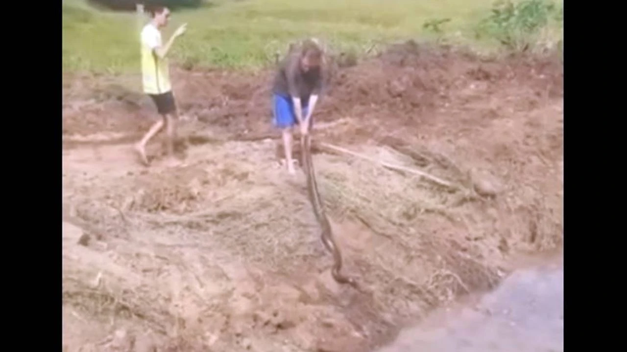 Trabalhadores encontram sucuri de 3 metros em açude no distrito de Porto Mendes