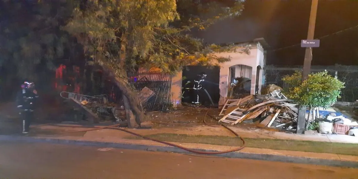 Casa de madeira fica totalmente destruída após incêndio no Loteamento Gramado em Cascavel